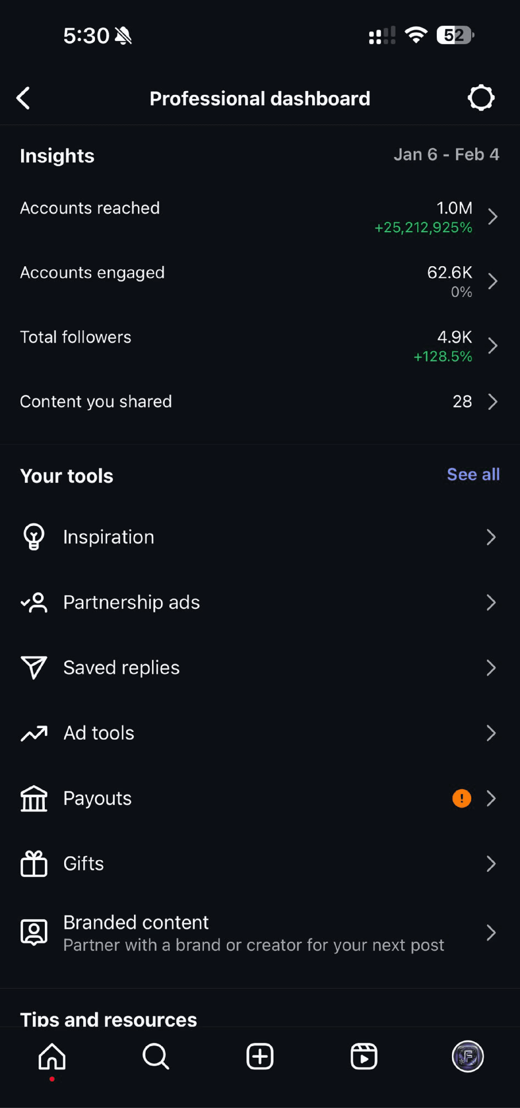 Track your performance with detailed social media insights and growth metrics.